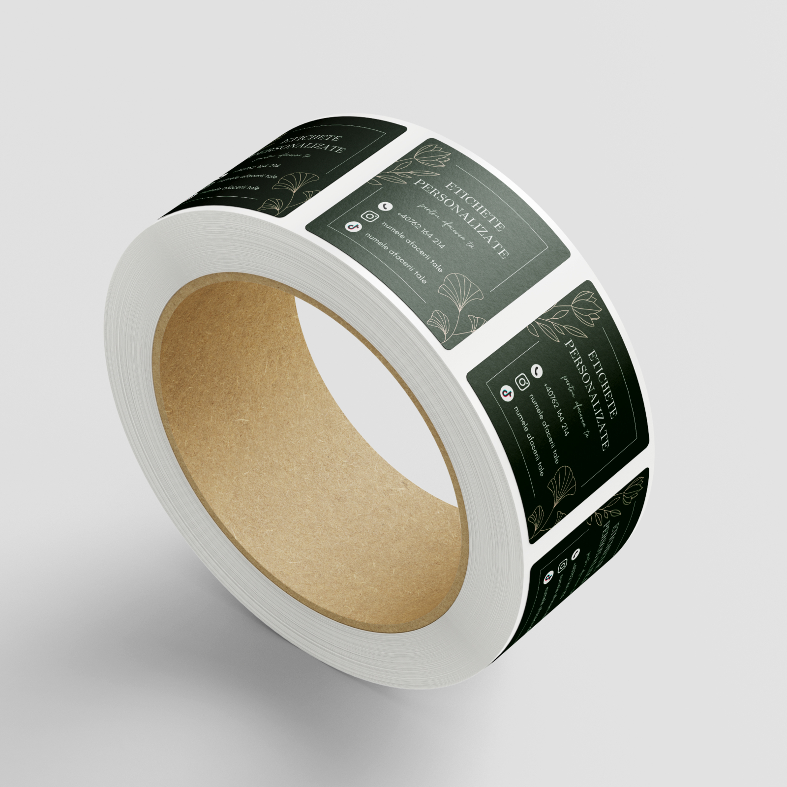 Etichete patrate personalizate realizate din material sintetic rezistent la apa si rupere