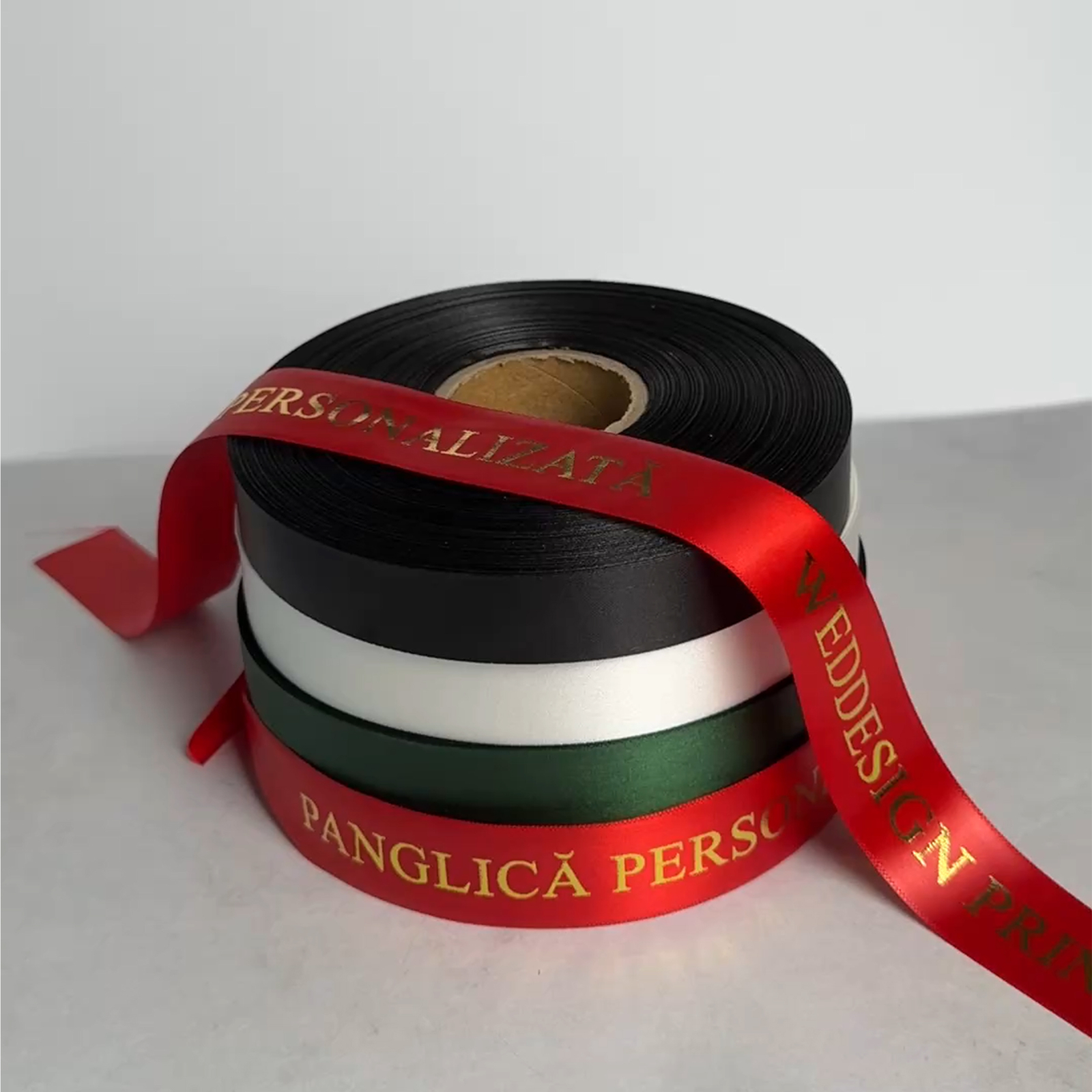 Fabricata din materiale de calitate superioara, panglica personalizata este disponibila in diverse latimi si culori, adaptandu-se cu usurinta oricaror cerinte. Tehnologia folosita in procesul de imprimare cu folio garanteaza o finisare deosebita, accentuand detaliile si oferind un aspect profesionist. Aceasta panglica este rezistenta si durabila, mentinandu-si aspectul impecabil chiar si dupa utilizare intensa.